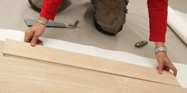 Nouvelle pose d’un parquet contre collé rainures et languette.