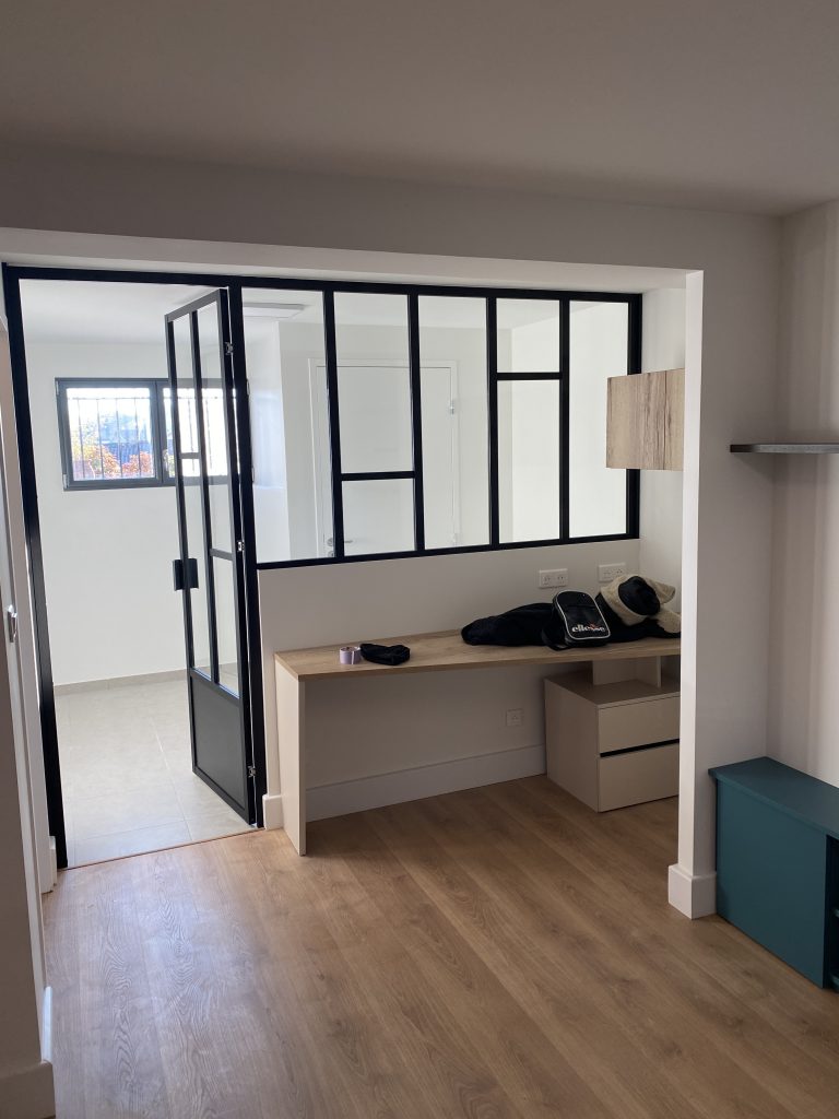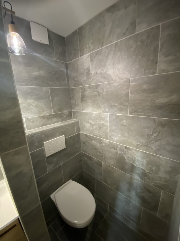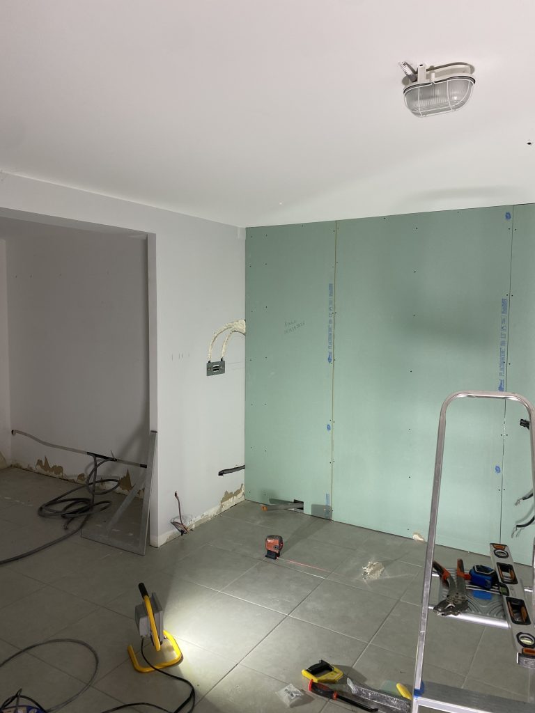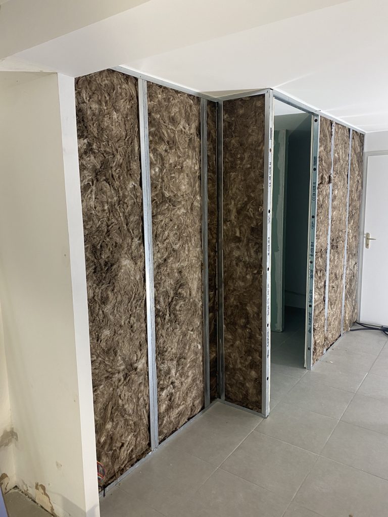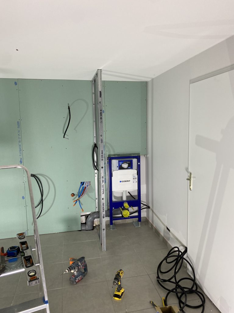 Voici la transformation charmante d’un sous-sol en un espace de vie accueillant, comprenant une salle de bain, des toilettes, un bureau et un petit salon/chambre. Nous avons pris en charge l’intégralité des travaux de placo, de préparation et de peinture. La plomberie a été confiée aux mains expertes de LMJ Plomberie, tandis que l’aménagement des sols, des meubles et la création de la verrière ont été réalisés avec finesse par Ka ré D’art.