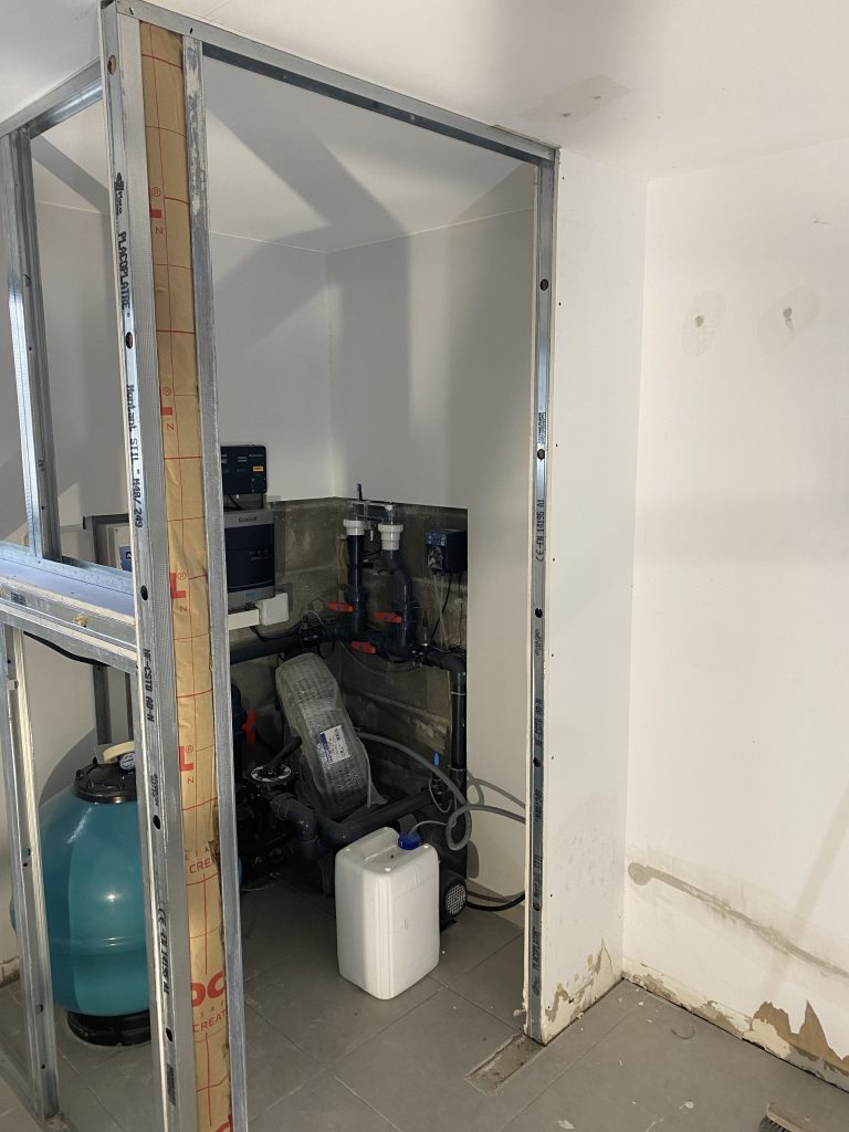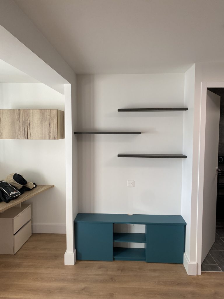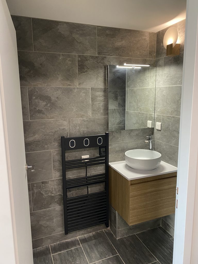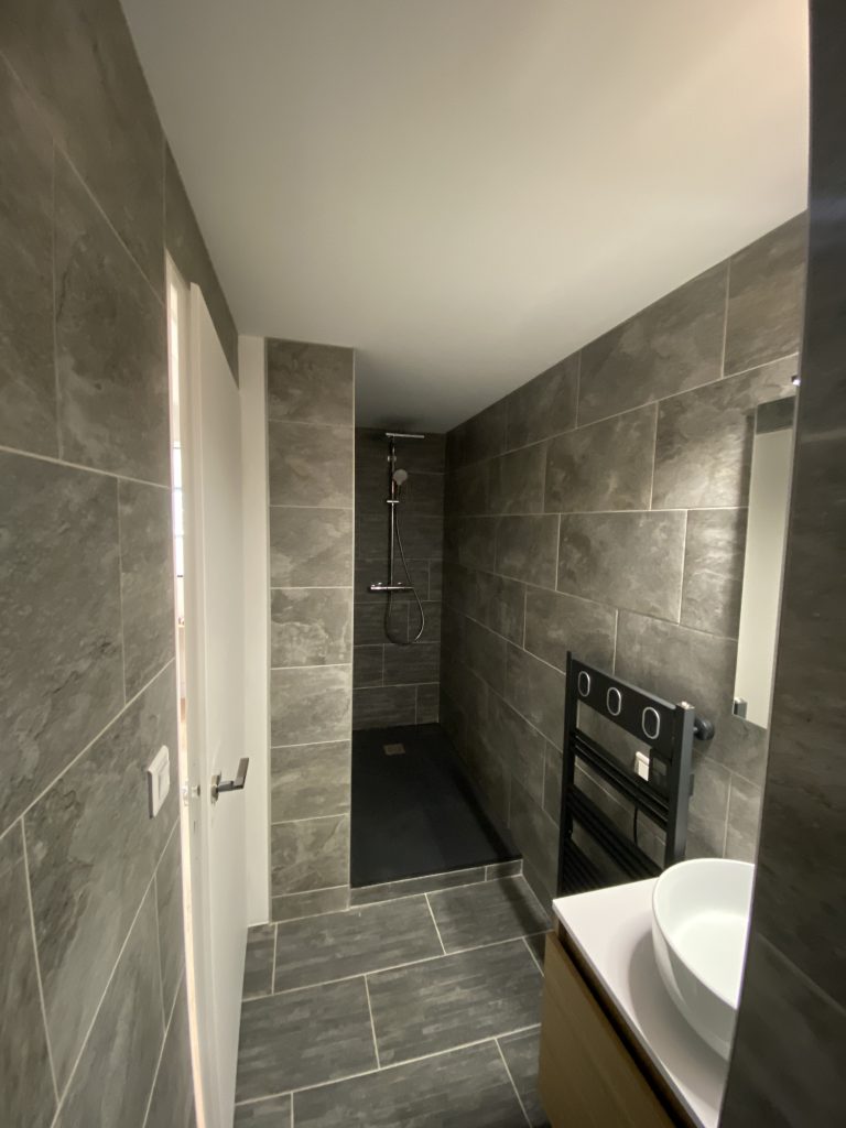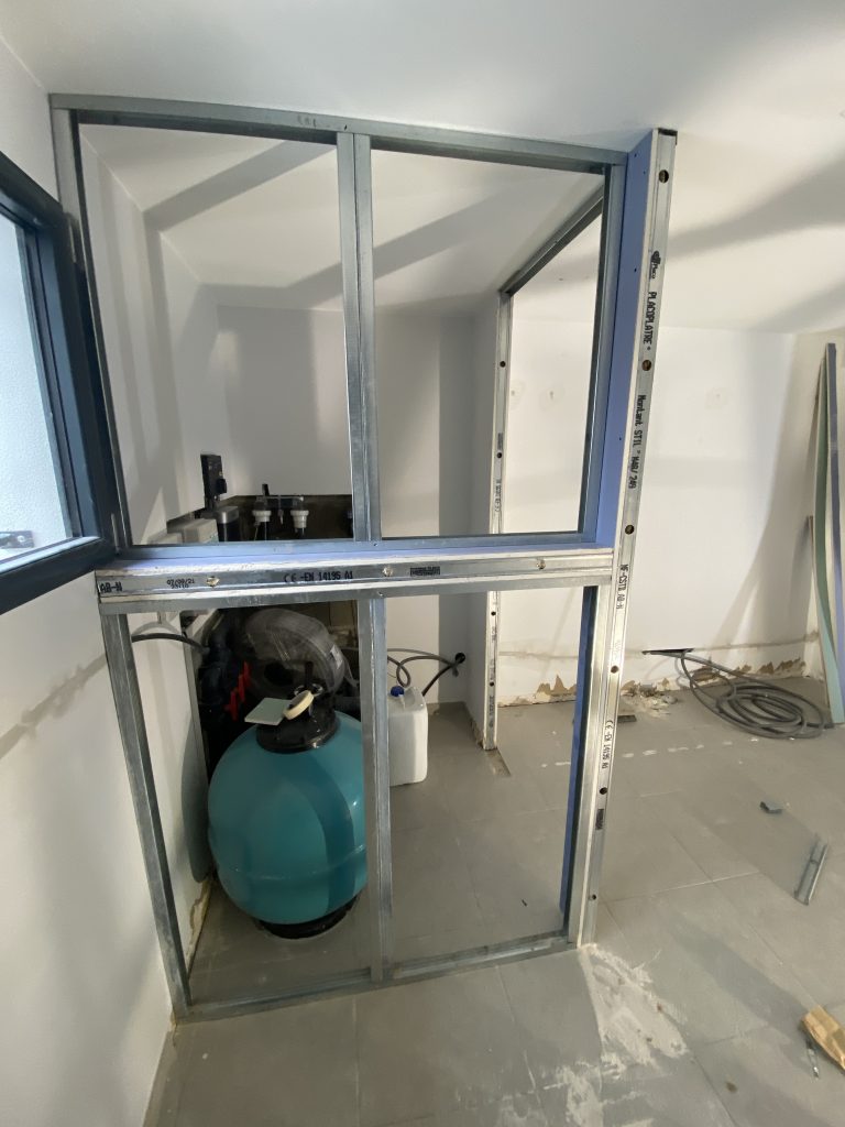 Voici la transformation charmante d’un sous-sol en un espace de vie accueillant, comprenant une salle de bain, des toilettes, un bureau et un petit salon/chambre. Nous avons pris en charge l’intégralité des travaux de placo, de préparation et de peinture. La plomberie a été confiée aux mains expertes de LMJ Plomberie, tandis que l’aménagement des sols, des meubles et la création de la verrière ont été réalisés avec finesse par Ka ré D’art.