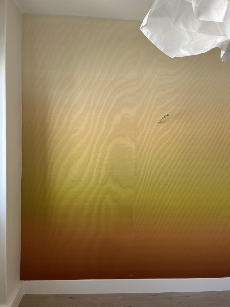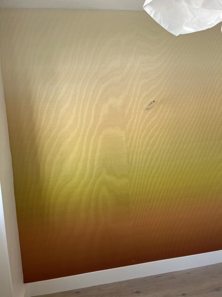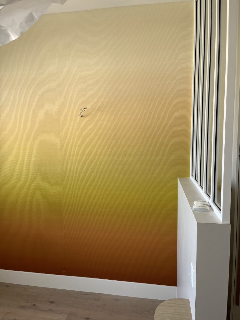 Chantier Croix-Rousse, Voici la pose d’un revêtement mural vinyle marque VESCOM Tonga, ainsi qu’un papier peint décoratif.