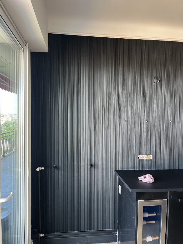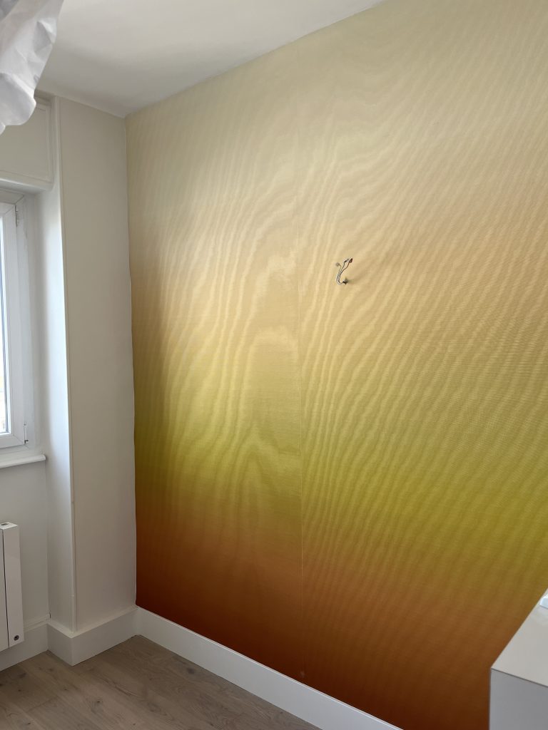 **Intervention dans un appartement d’exception** Nous avons eu le plaisir d’intervenir dans un magnifique appartement pour la pose de deux revêtements muraux décoratifs, tous deux d’une grande complexité. Le premier revêtement est un papier peint décoratif, dont l’impression délicate requiert une préparation minutieuse. Nous avons commencé par un ratissage des murs, suivi d’un ponçage soigné et de l’application d’une couche d’impression. Pour garantir une adhésion parfaite, nous avons utilisé une colle spécialement conçue pour ce type de papier, permettant ainsi de réaliser une pose impeccable de ce ravissant revêtement. Le second revêtement est un vinyle de la marque VESCOM, issu de la gamme TONGA. La préparation était similaire à celle du premier, à l’exception de la couche d’impression, qui était noire pour harmoniser avec le revêtement. Nous avons également employé un mélange de deux colles adaptées, tenant compte du poids et de l’épaisseur du matériau. La pose de ce vinyle, plus complexe qu’un papier peint traditionnel, a nécessité un léger chauffage pour réaliser des découpes précises, ce qui nécessite une expertise particulière. Le résultat final apporte une touche de modernité et de couleur à chaque pièce de cet appartement sublime. Découvrez ci-dessous les photos de ces magnifiques revêtements.