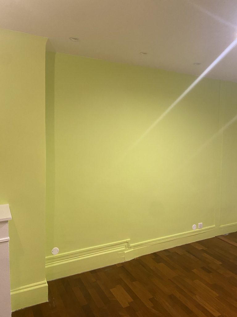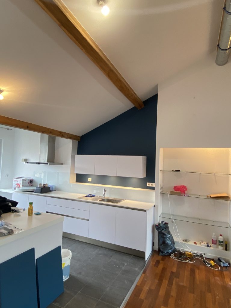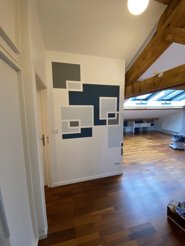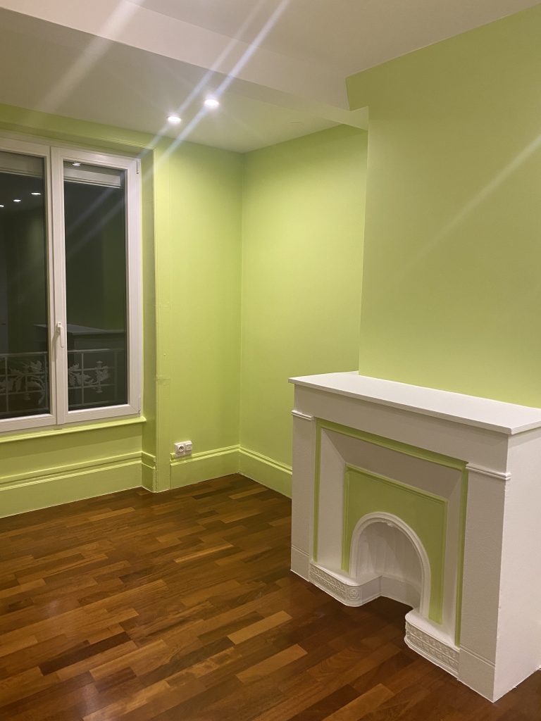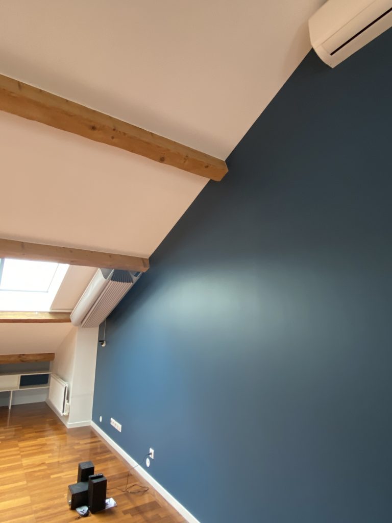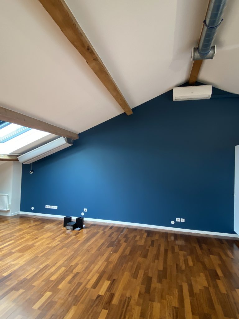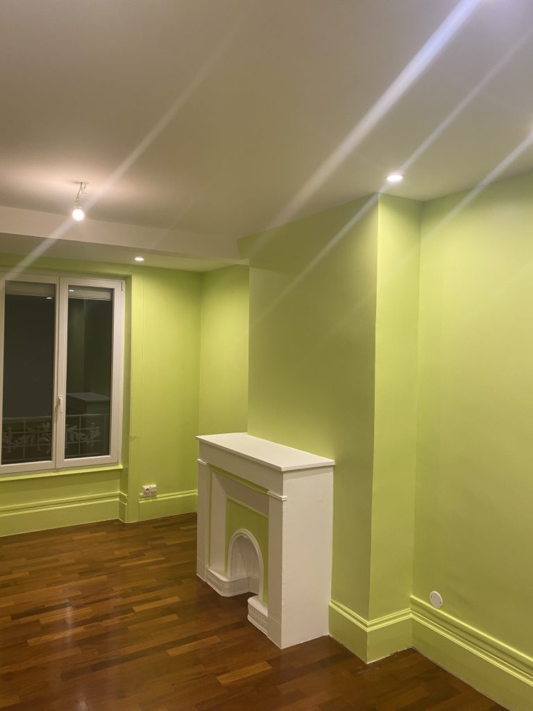 Découvrez cette remarquable prestation réalisée dans un superbe appartement au dernier étage. Nous avons métamorphosé une vaste pièce de vie avec une hauteur sous plafond de 4 mètres, comprenant salon, salle à manger et cuisine, ainsi que la rénovation d’une chambre attenante. Pour la pièce principale, nous avons pris soin de préparer les murs en effectuant des mastics ciblés, un ponçage minutieux, suivi d’une couche d’impression et de deux couches de finition. Le résultat : une peinture décorative spectaculaire, accentuée par des jeux subtils de teintes sur les murs, mettant en valeur l’élégance de cet espace majestueux. Quant à la chambre, un travail méticuleux a été entrepris : dépose de papier peint sur les murs, préparation minutieuse des plafonds avec un traitement anti-fissures et une toile de verre type micro lite pour une durabilité accrue. Les murs ont été soigneusement ratissés, poncés, puis revêtus d’une impression suivie de deux couches de finition, couronnées par une teinte vive, répartie harmonieusement dans toute la pièce, offrant ainsi une atmosphère dynamique et raffinée.