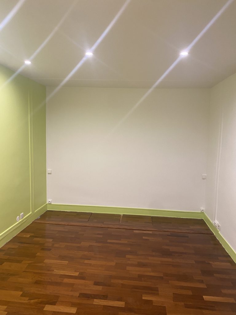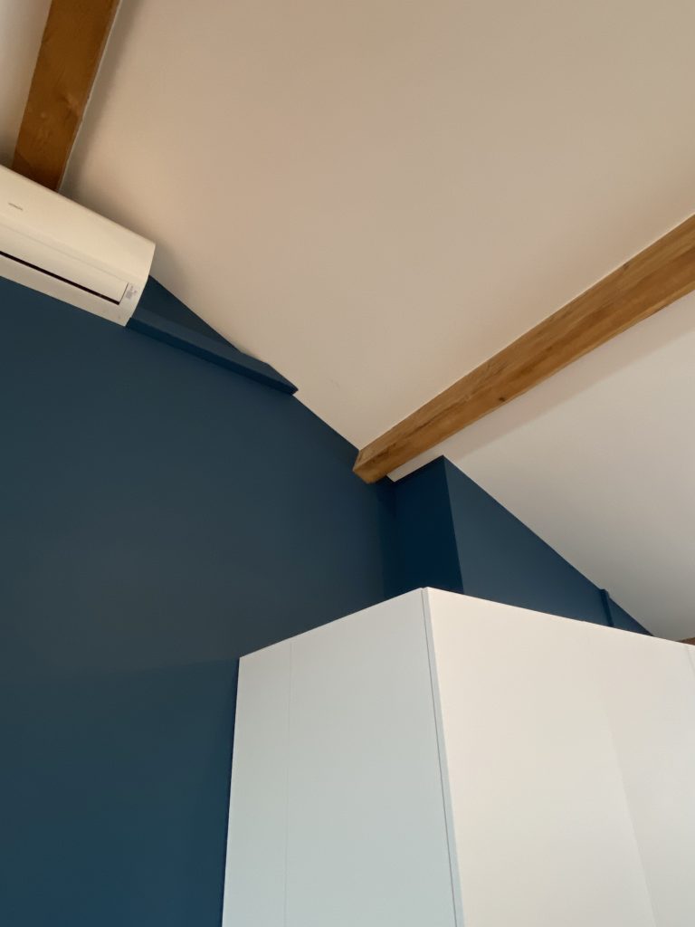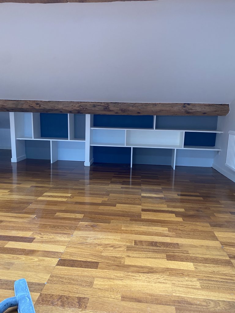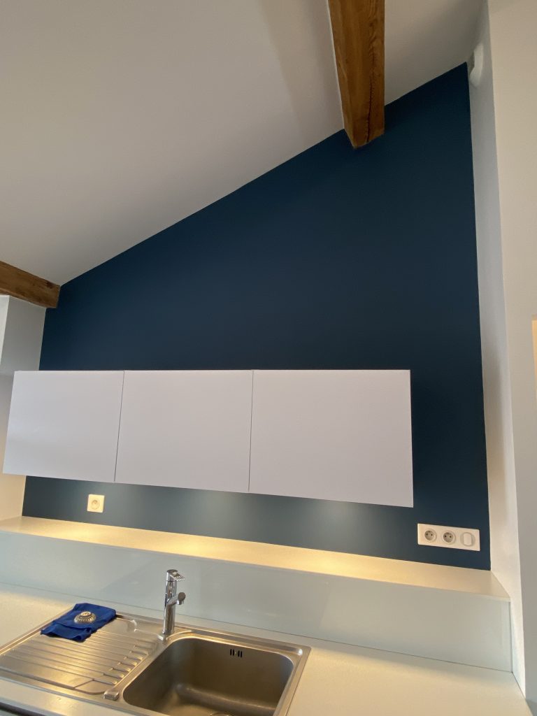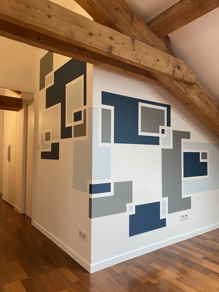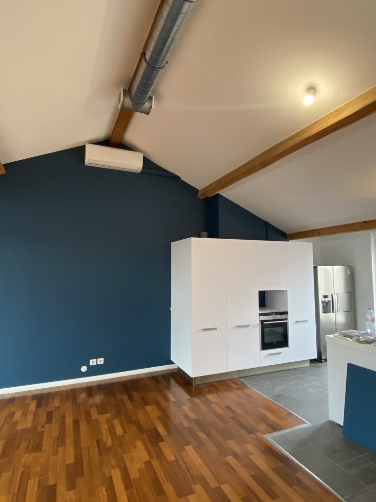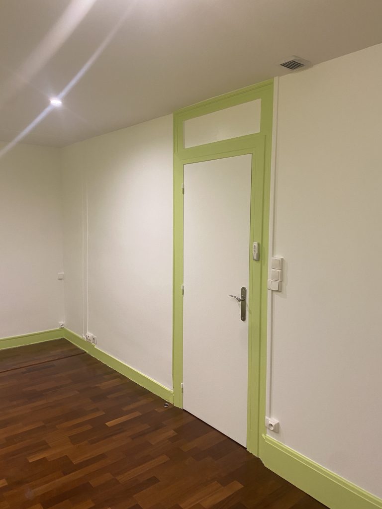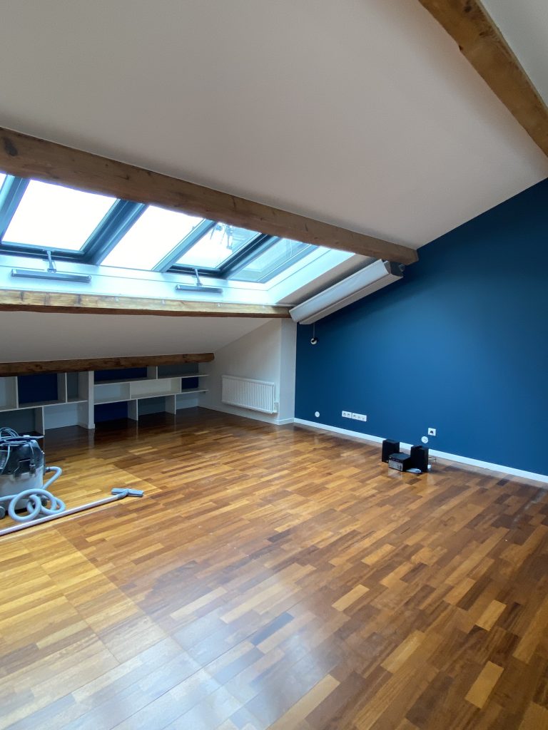 Découvrez cette remarquable prestation réalisée dans un superbe appartement au dernier étage. Nous avons métamorphosé une vaste pièce de vie avec une hauteur sous plafond de 4 mètres, comprenant salon, salle à manger et cuisine, ainsi que la rénovation d’une chambre attenante. Pour la pièce principale, nous avons pris soin de préparer les murs en effectuant des mastics ciblés, un ponçage minutieux, suivi d’une couche d’impression et de deux couches de finition. Le résultat : une peinture décorative spectaculaire, accentuée par des jeux subtils de teintes sur les murs, mettant en valeur l’élégance de cet espace majestueux. Quant à la chambre, un travail méticuleux a été entrepris : dépose de papier peint sur les murs, préparation minutieuse des plafonds avec un traitement anti-fissures et une toile de verre type micro lite pour une durabilité accrue. Les murs ont été soigneusement ratissés, poncés, puis revêtus d’une impression suivie de deux couches de finition, couronnées par une teinte vive, répartie harmonieusement dans toute la pièce, offrant ainsi une atmosphère dynamique et raffinée.