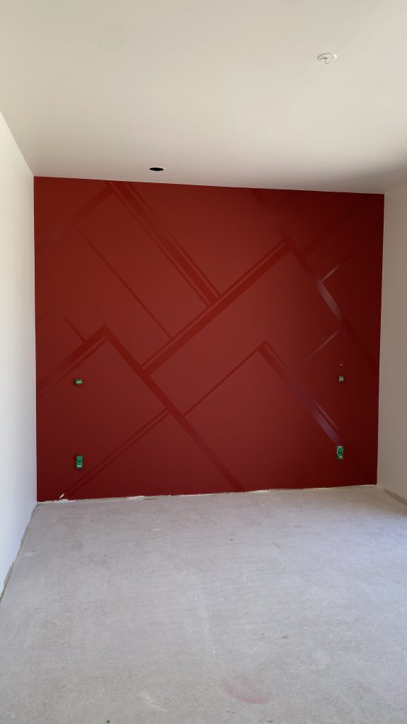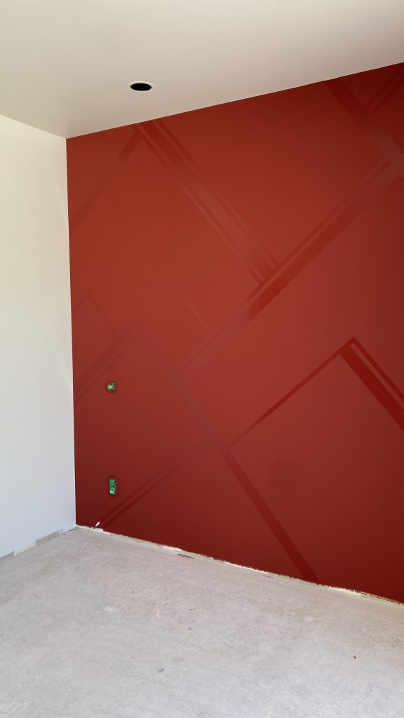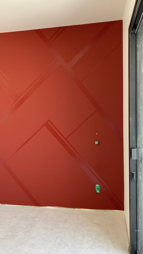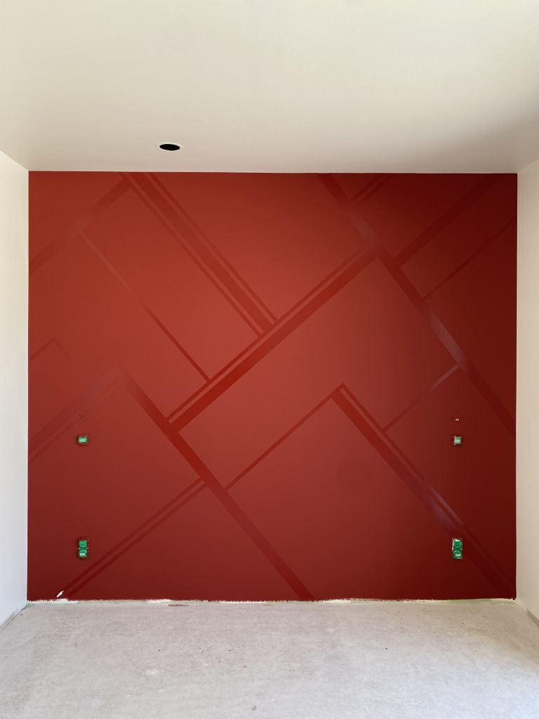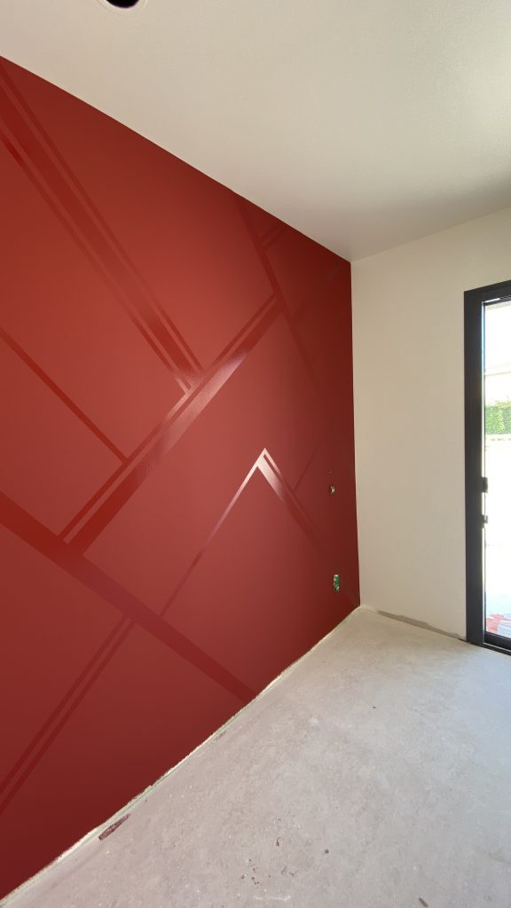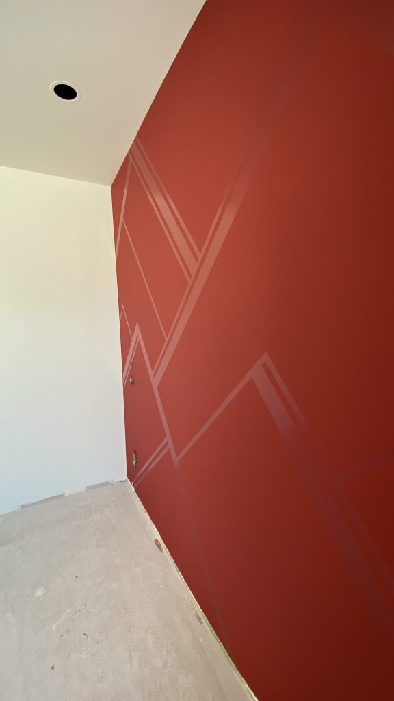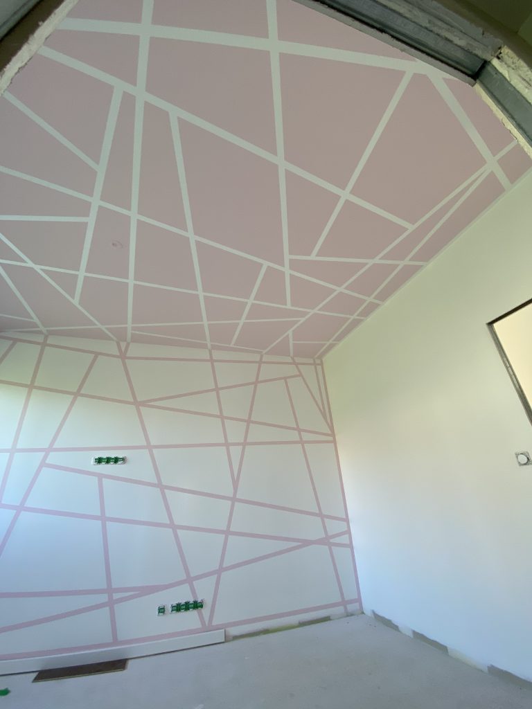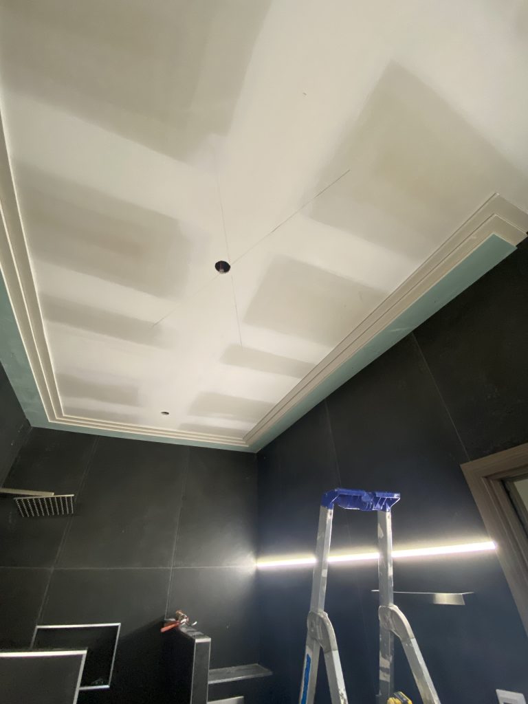 Découvrez deux peintures décoratives uniques : l’une ornant une tête de lit, l’autre embellissant un bureau dans une chambre d’ami. Jouant subtilement avec des jeux de brillance et de matité ainsi que des formes géométriques, ces créations apportent une touche d’élégance à leur environnement. Par ailleurs, admirez la splendide réalisation d’un plafond de salle de bain, agrémenté de corniches en placo, d’une décoration centrale étoilée à plusieurs niveaux également réalisée en placo, de spots intégrés et d’une peinture décorative. Les photos témoignent de l’embellissement remarquable de ces espaces.