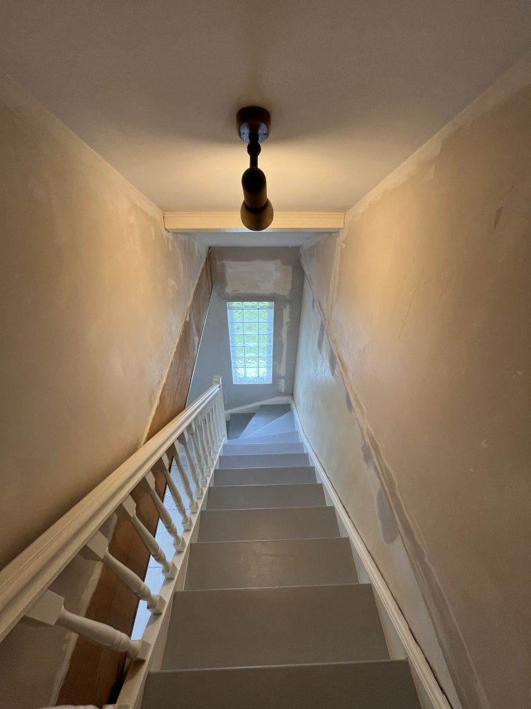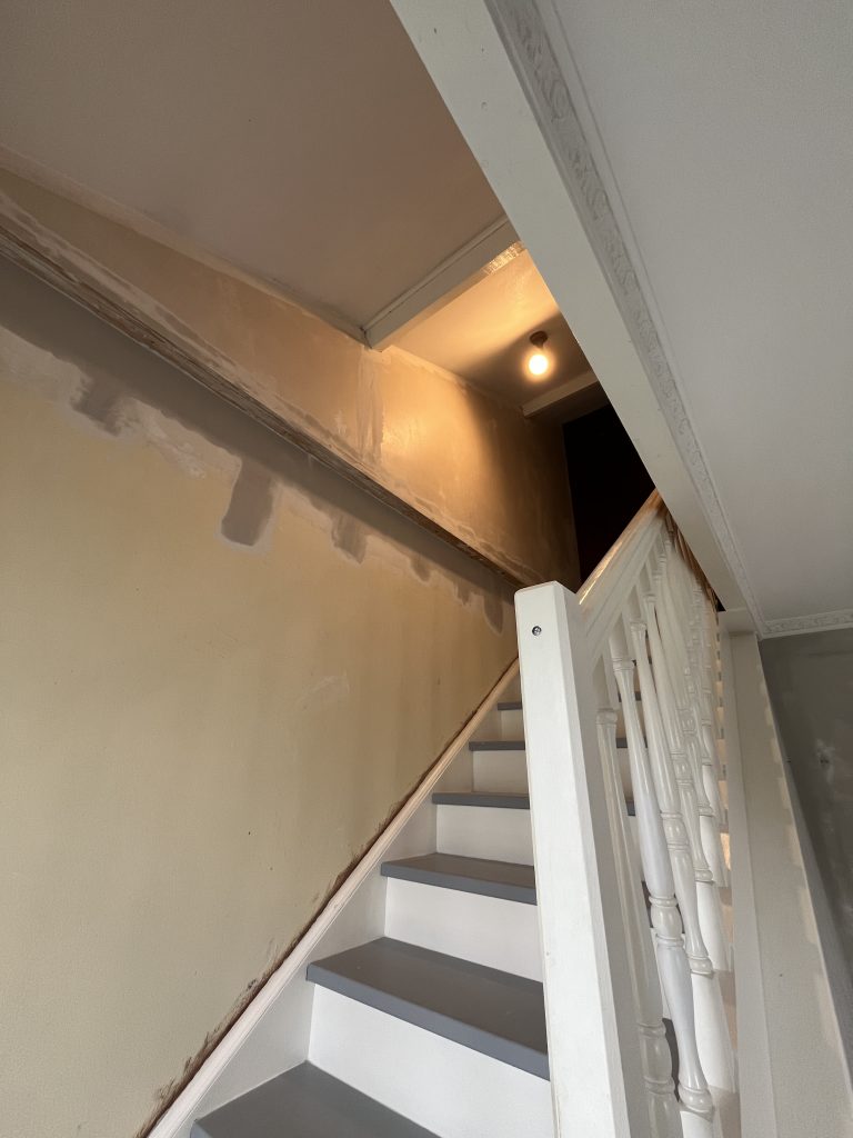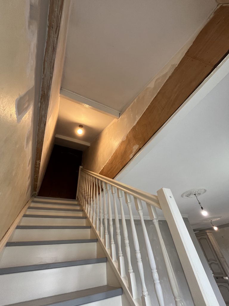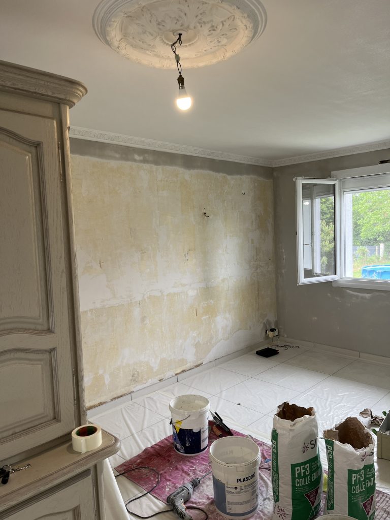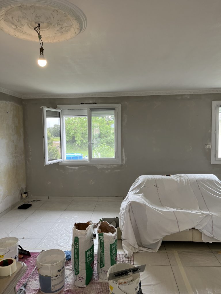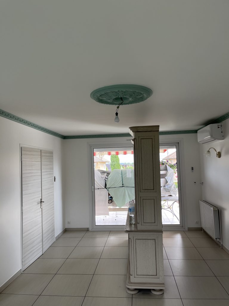 **Rénovation d’un Salon et Salle à Manger : Une Transformation Élégante** Nous avons récemment eu le plaisir de réaliser une belle rénovation dans un salon, une salle à manger et une petite montée d’escalier. Après que nos clients aient procédé à la dépose du papier peint, nous avons pris en main les travaux. Nous avons commencé par un masticage soigné au niveau du plafond, suivi d’un ratissage des murs en trois passes pour garantir une surface parfaitement lisse. Un ponçage méticuleux a ensuite été effectué avant l’application d’une couche d’impression, suivie de deux couches de finition pour un rendu impeccable. Concernant l’escalier, nous avons également effectué un ponçage minutieux, appliqué une couche d’impression, puis deux couches de peinture glycéro pour assurer durabilité et éclat. Pour sublimer cet espace, nous avons choisi une teinte harmonieuse pour les rosaces, les corniches, certaines faces de murs, ainsi que les marches de l’escalier, créant ainsi un joli rappel visuel. Découvrez les photos illustrant le déroulement de ces travaux, témoignant de la transformation réussie de cet espace de vie.
