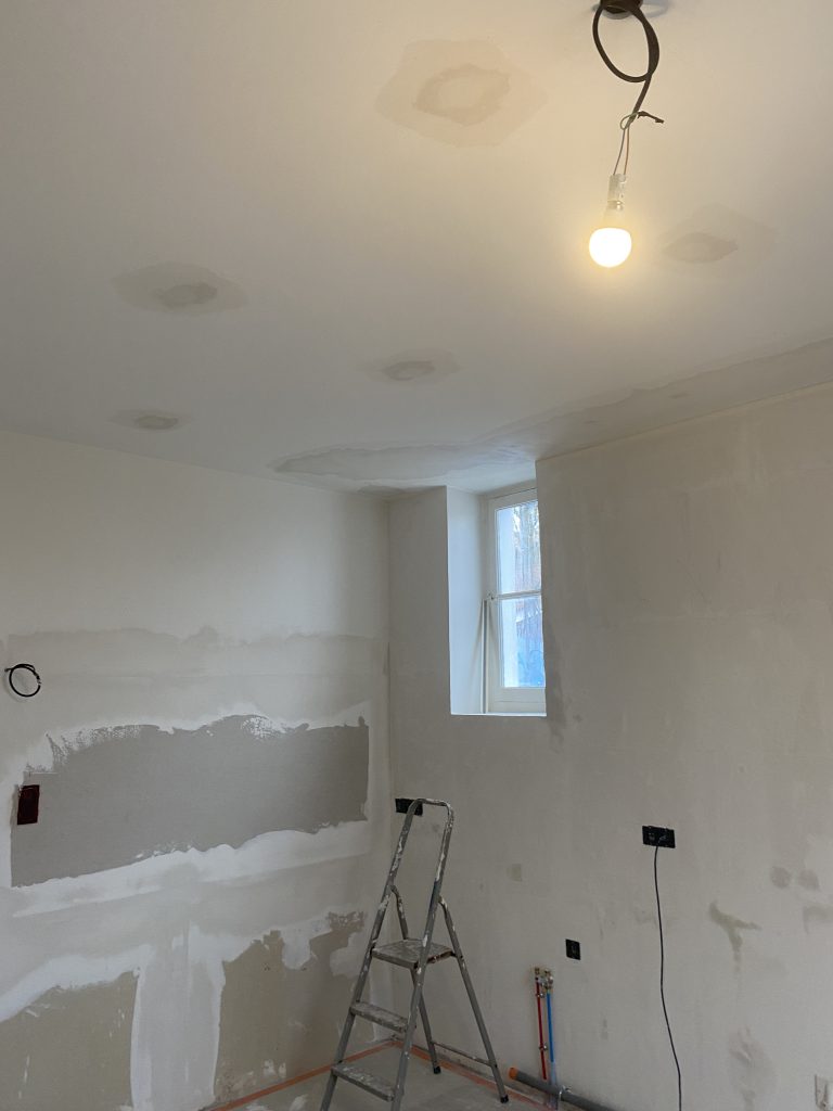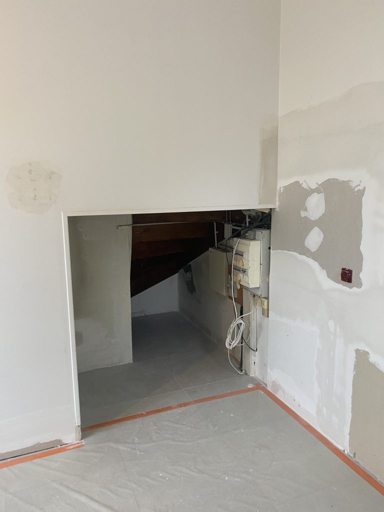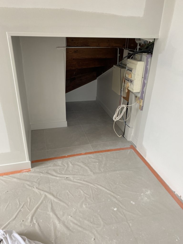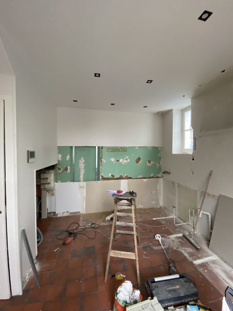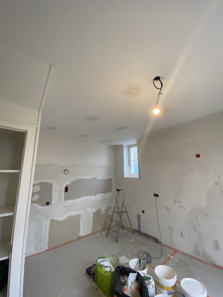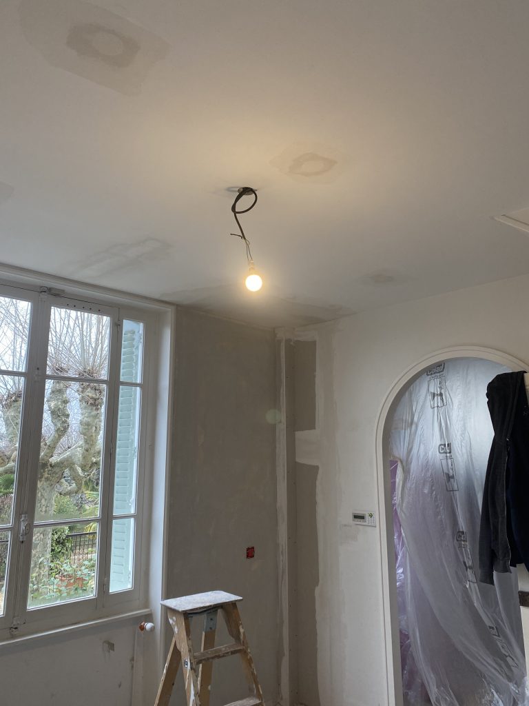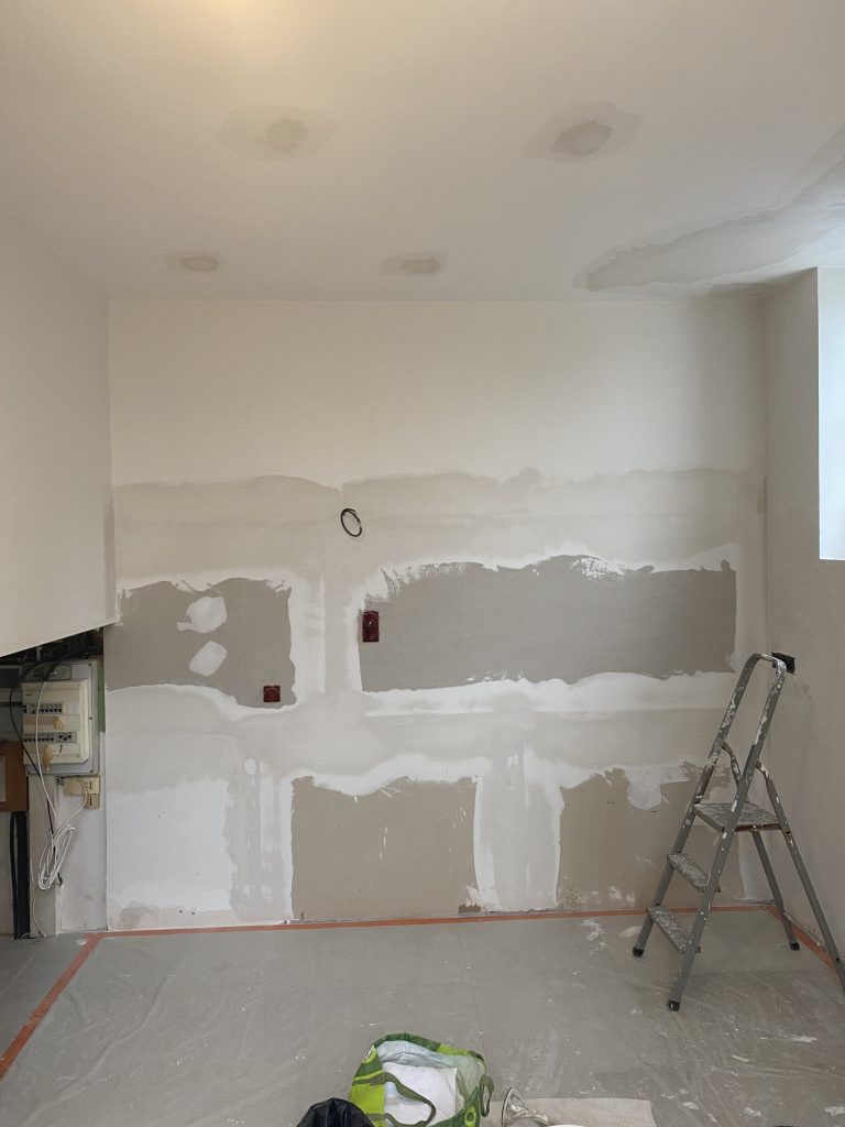 Voici les étapes exécutées dans la rénovation de cette cuisine : commençant par la dépose complète et l’évacuation de l’ancienne cuisine, ainsi que la suppression de la faïence sur les murs. Ensuite, nous avons procédé à la reprise du placo sur un mur beaucoup trop abîmé par la dépose de la faïence, suivi d’une préparation minutieuse de la pièce, comprenant un lissage des murs et un rebouchage de tous les spots au plafond. Nous avons ensuite réalisé un ponçage complet, suivi d’une impression et de deux couches de finition. Pour apporter une touche de couleur à cette cuisine, nous avons opté pour une teinte claire et harmonieuse, tout en redonnant un coup de jeune aux boiseries pour parfaire l’ensemble.