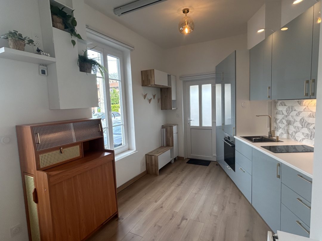 Nous avons ensuite préparé les murs et les plafonds en appliquant des bandes à joint, trois passes d’enduit de finition, un ponçage méticuleux, suivi d’une couche d’impression pour assurer une base solide. Enfin, deux couches de finition mate pour les plafonds et velours pour les murs et les boiseries ont été appliquées. La pose d’un parquet stratifié, avec sa sous-couche et ses plinthes assorties, a apporté la touche finale à cet espace de vie chaleureux. Découvrez quelques photos avant/après pour apprécier la transformation.